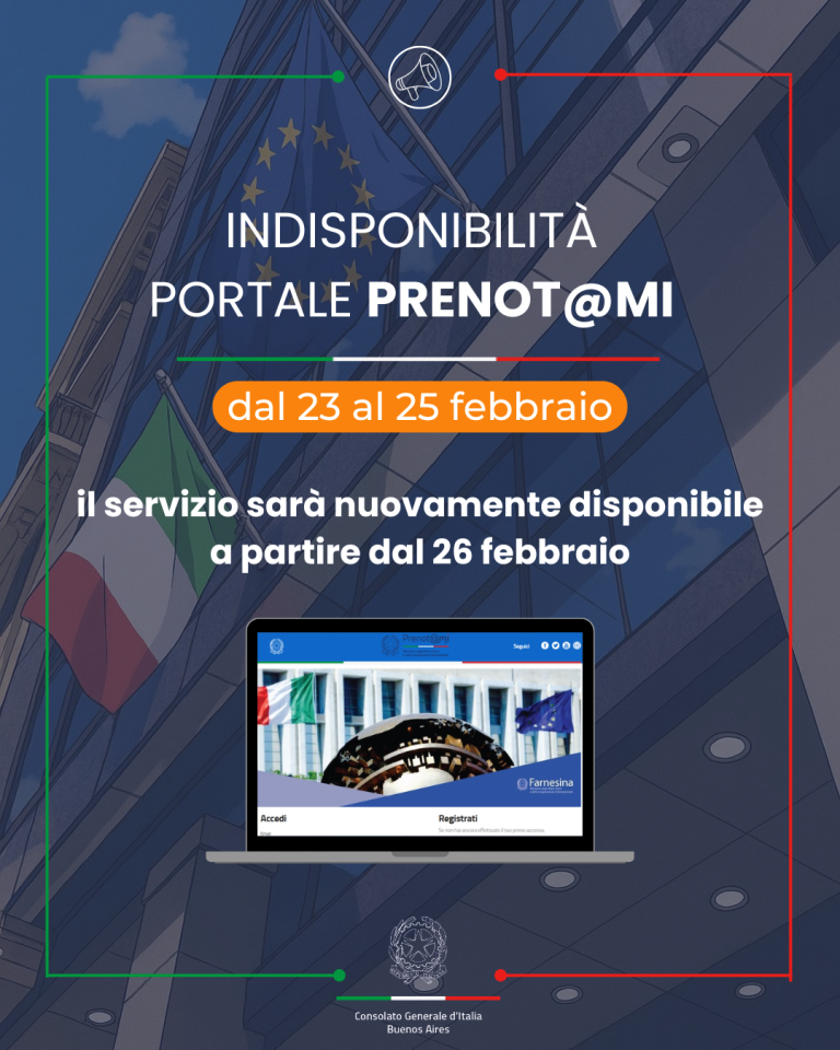 Il Consolato Generale d’Italia in Buenos Aires rende noto che è stata indetta una procedura di selezione per l’assunzione di n° 1 (uno) impiegato a contratto da adibire ai servizi di assistente amministrativo nel settore consolare.